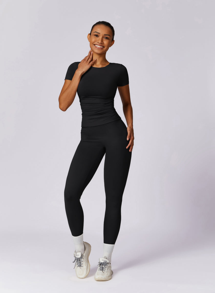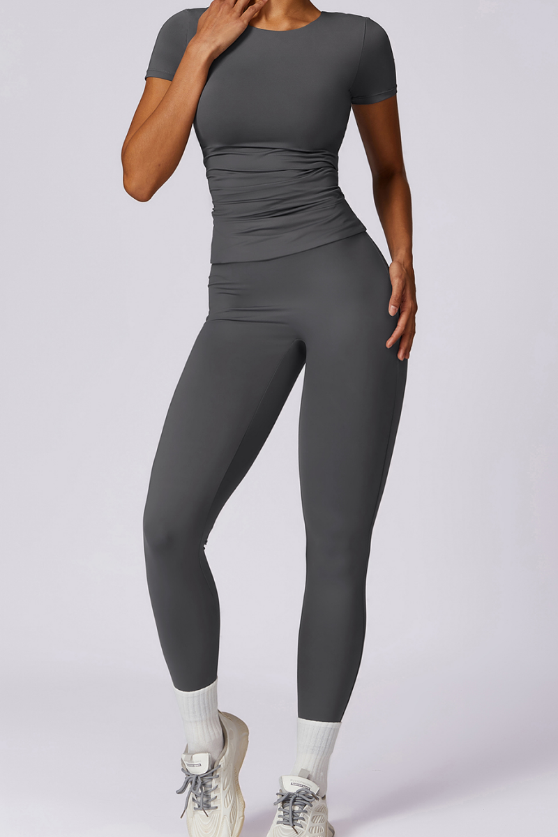 بدلة جسد بأكمام طويلة وظهر منخفض مجعد