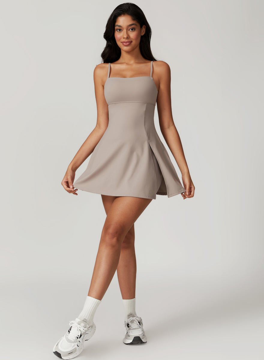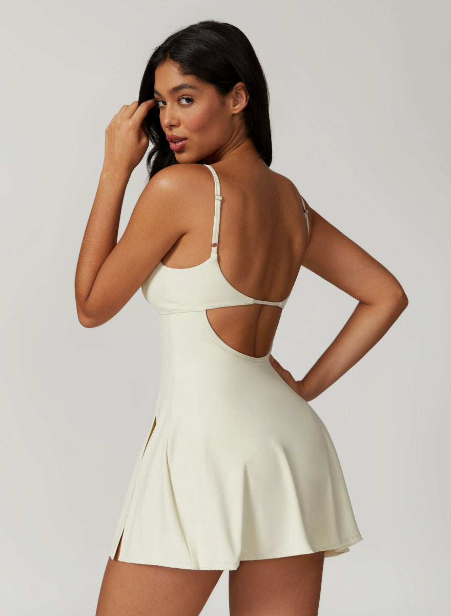 فستان تنس منخفض الظهر مع شورتات مخفية