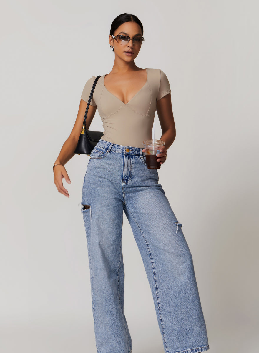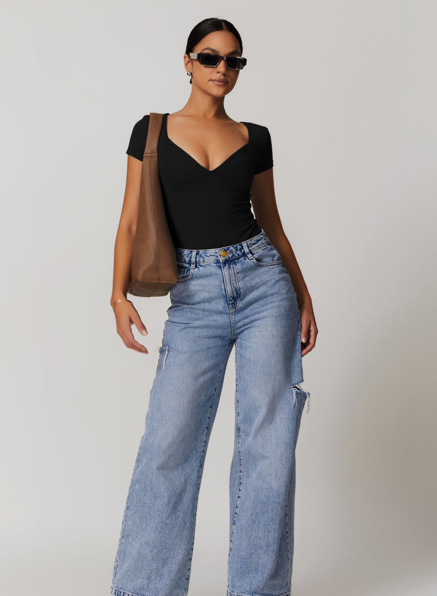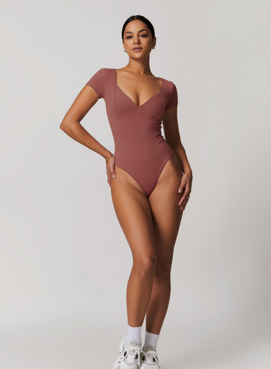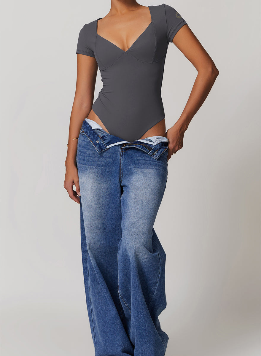 بدلة بأكمام قصيرة وياقة على شكل قلب