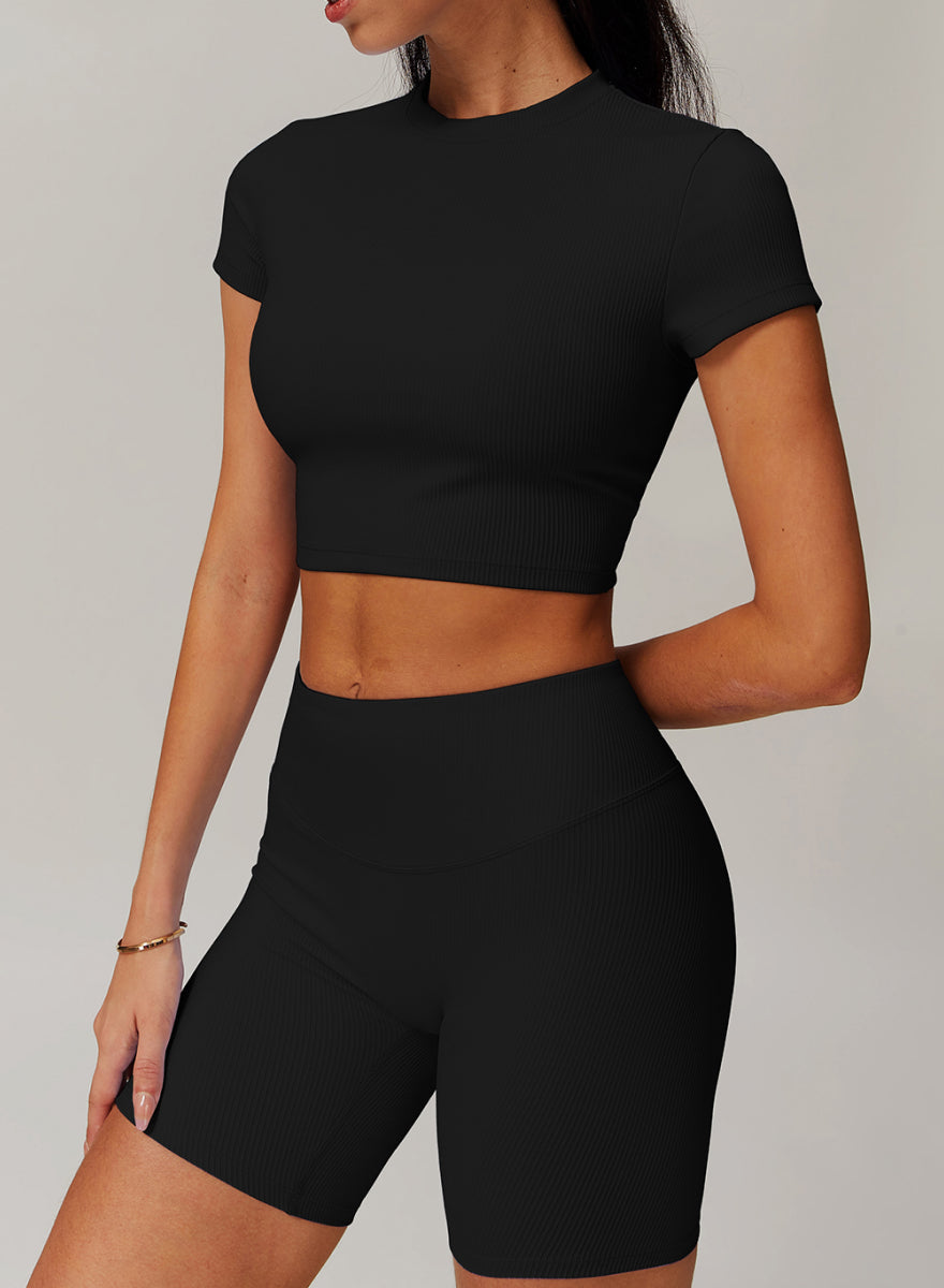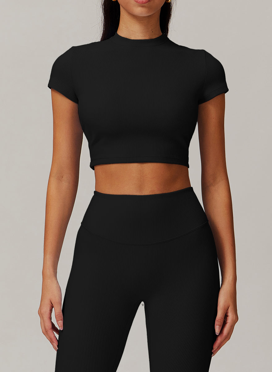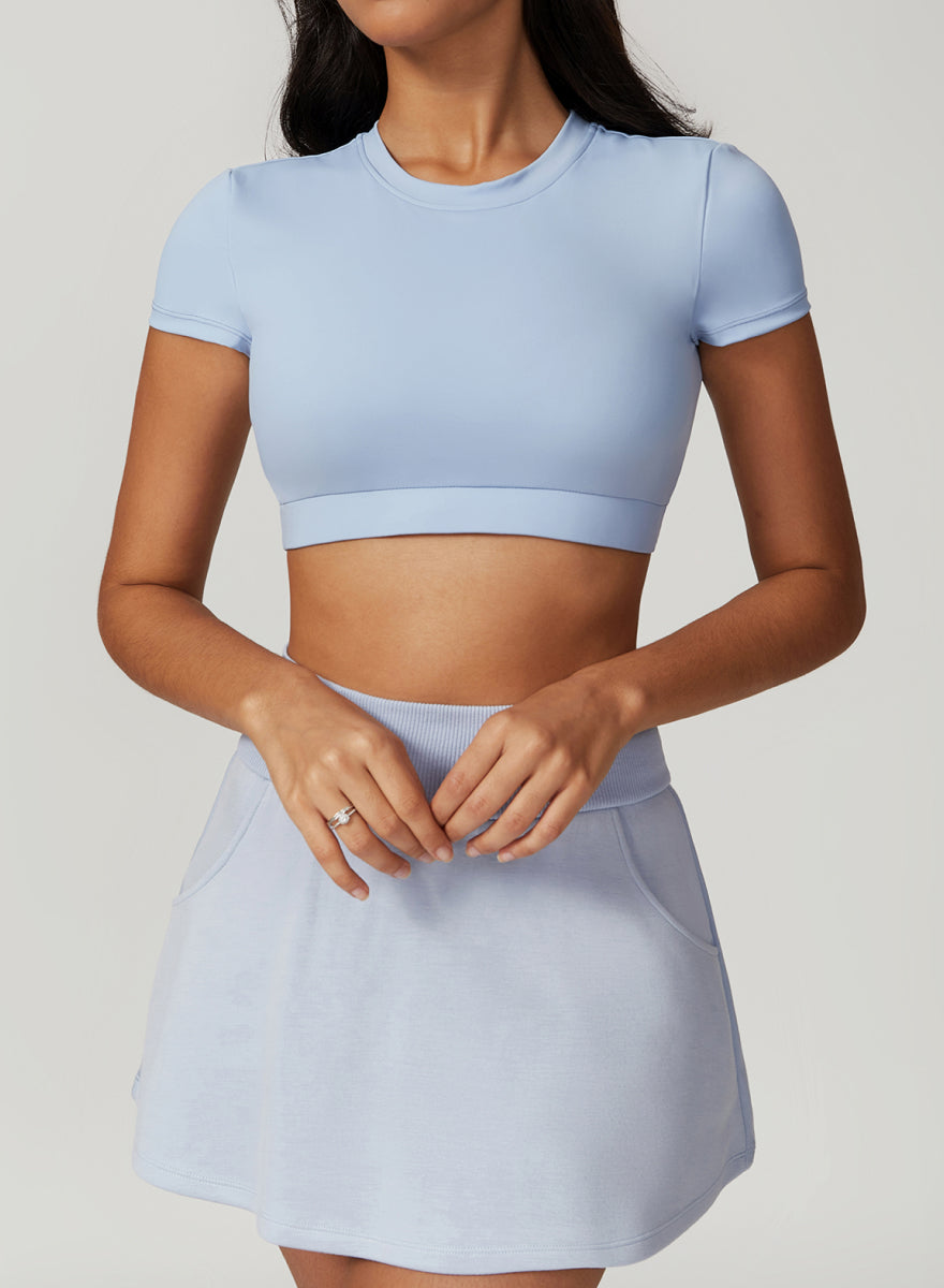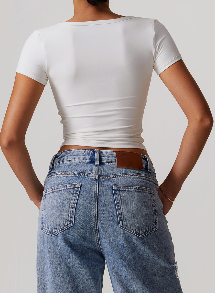 Square Neckline Short Sleeves Fitted Crop Top