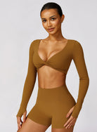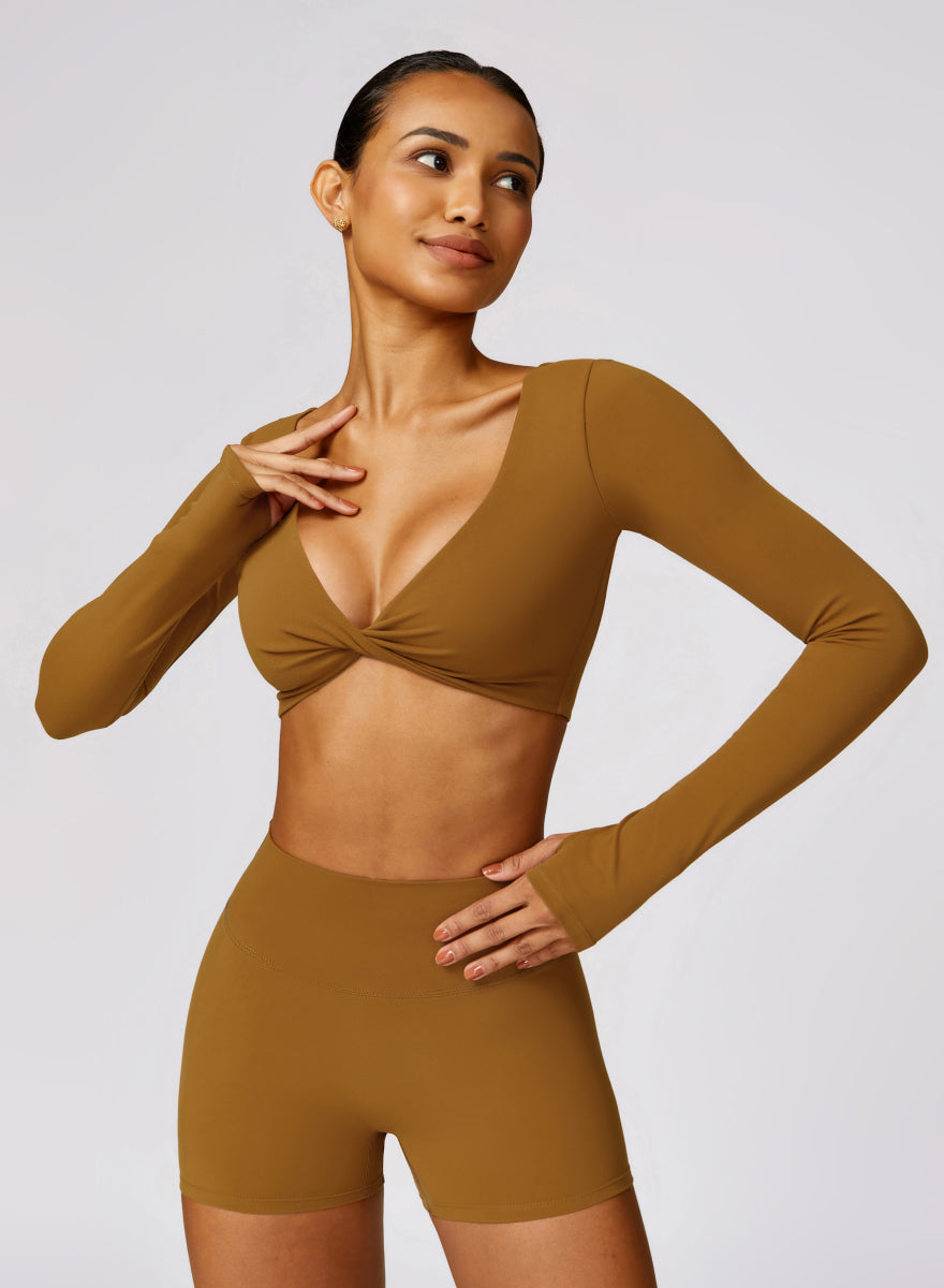 بلوزة قصيرة بأكمام طويلة مع تصميم ملتوي