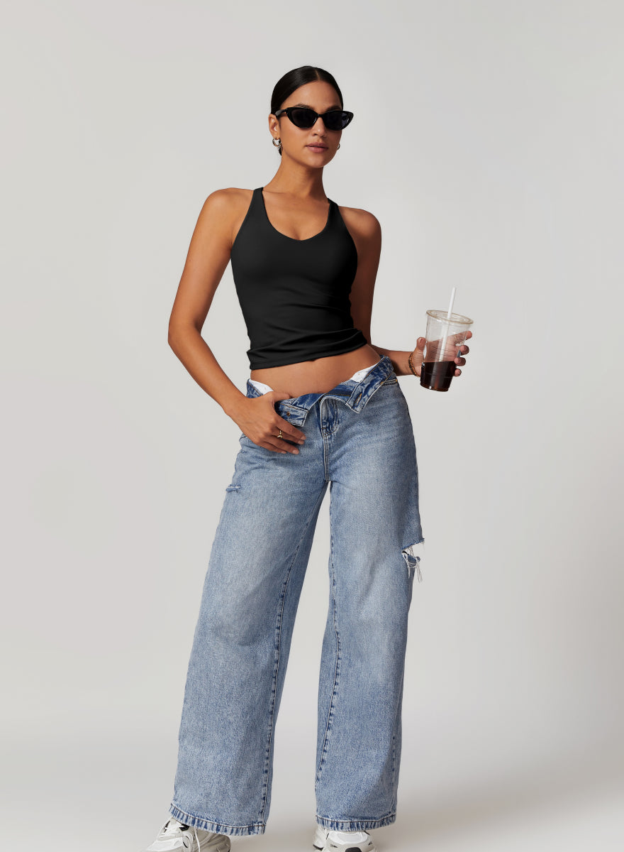 تي شيرت بدون أكمام بتصميم ظهر متقاطع