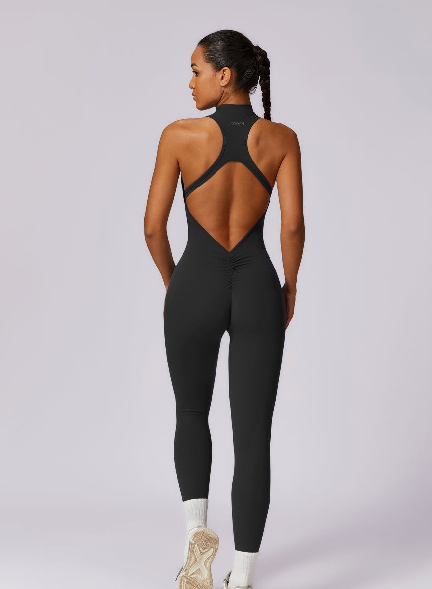 بدلة جسد بأكمام طويلة وظهر منخفض مجعد