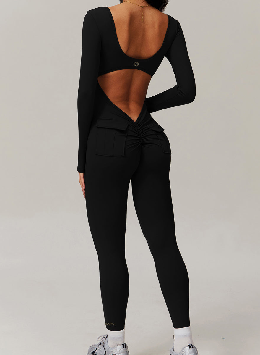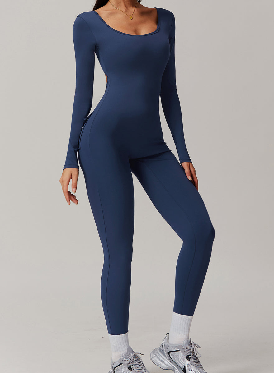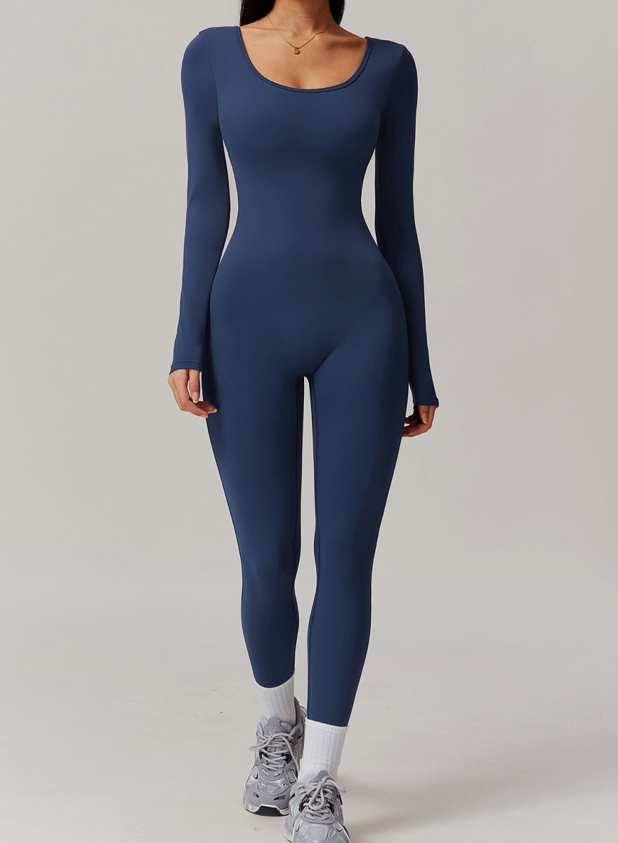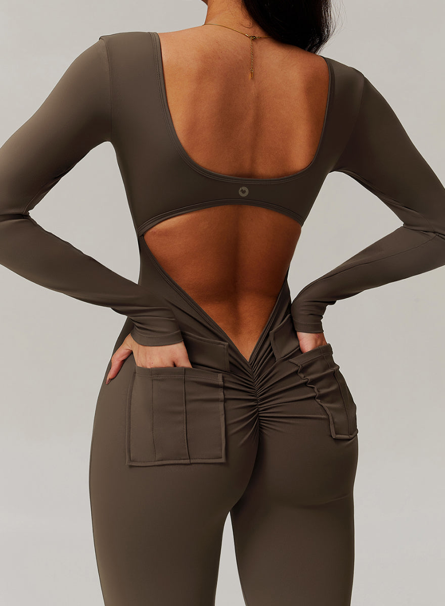 بدلة جسد بأكمام طويلة وظهر منخفض مجعد