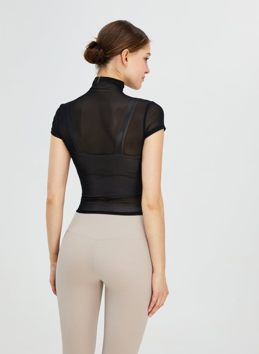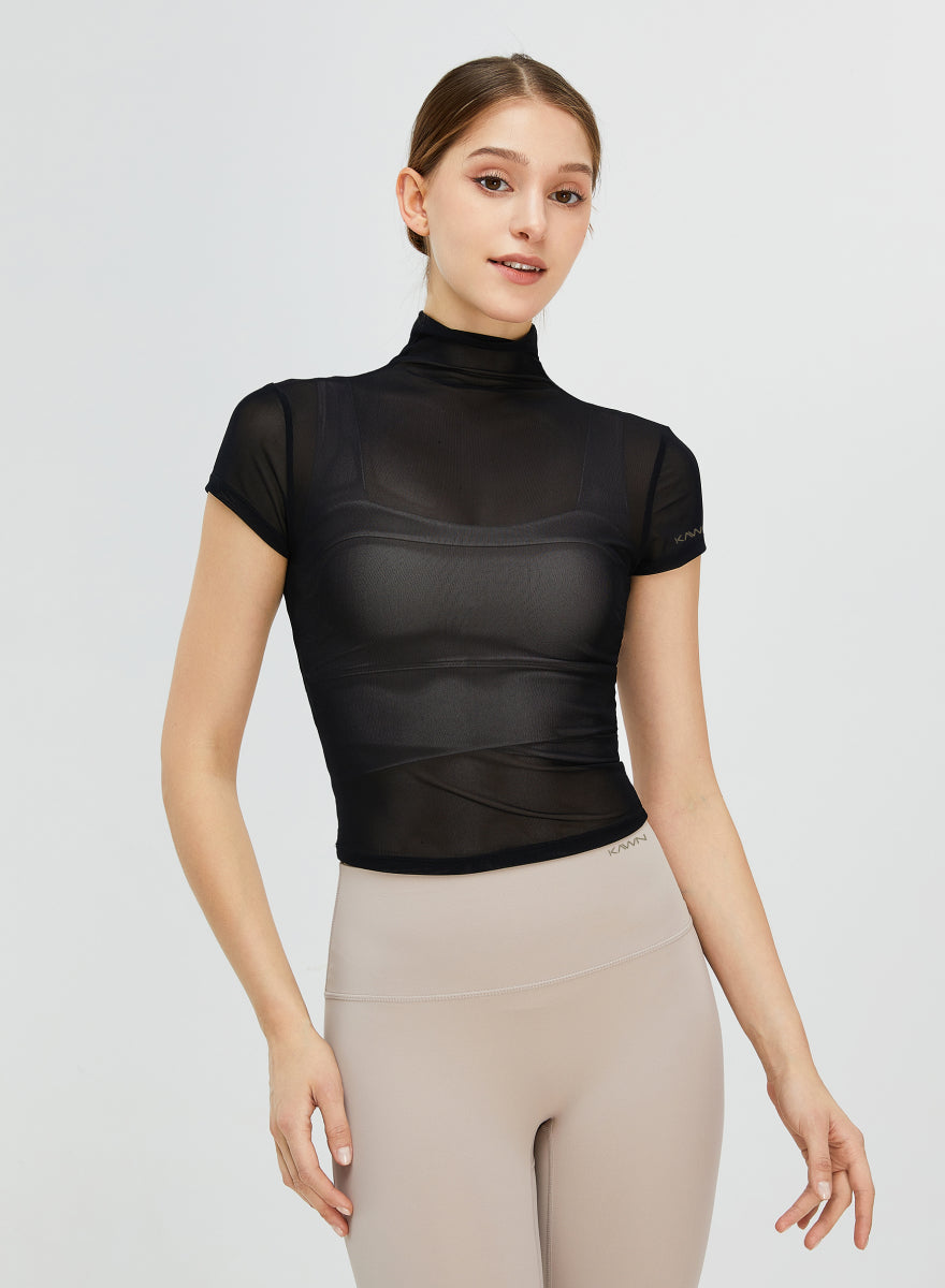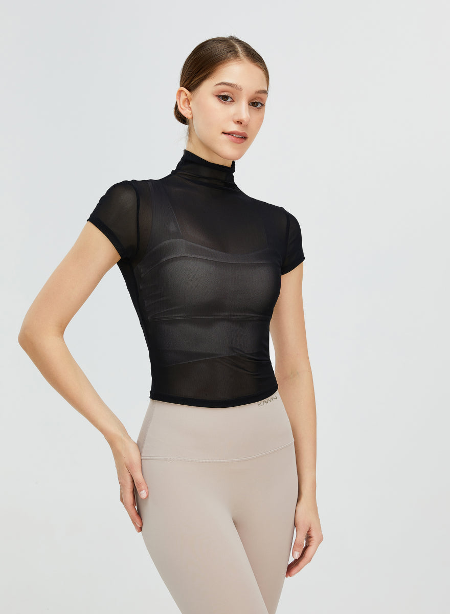 Short Sleeves Turtle Neck Seethrough Shirt