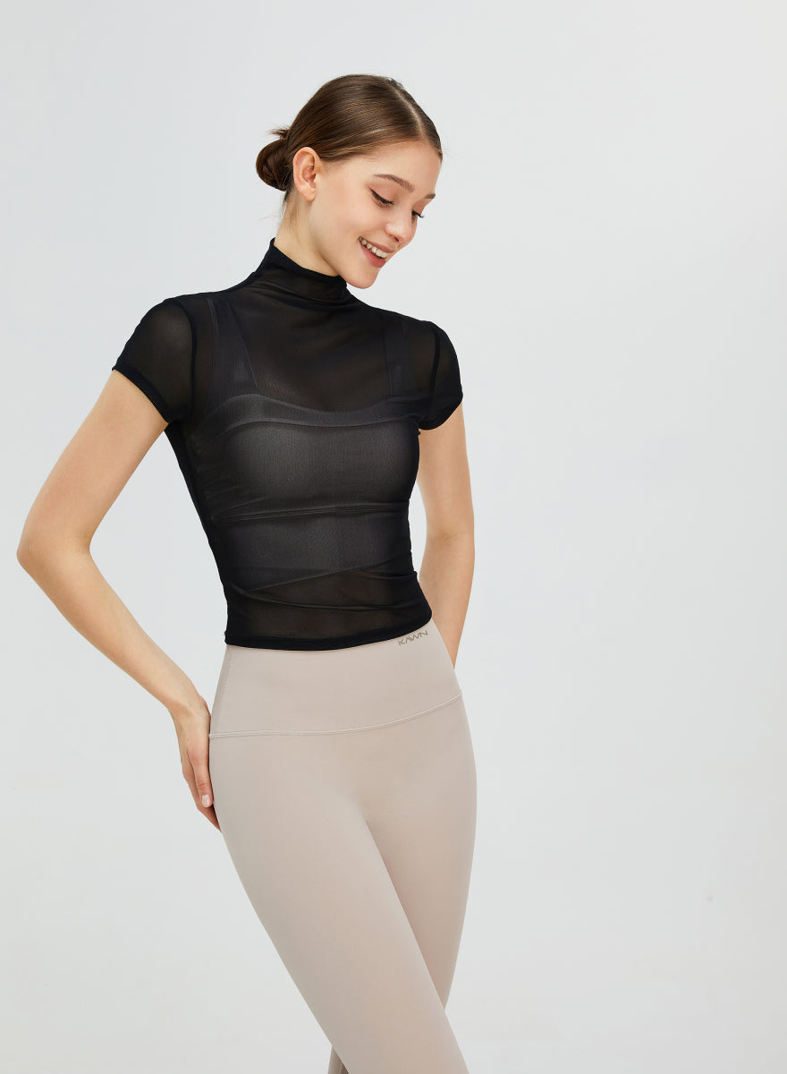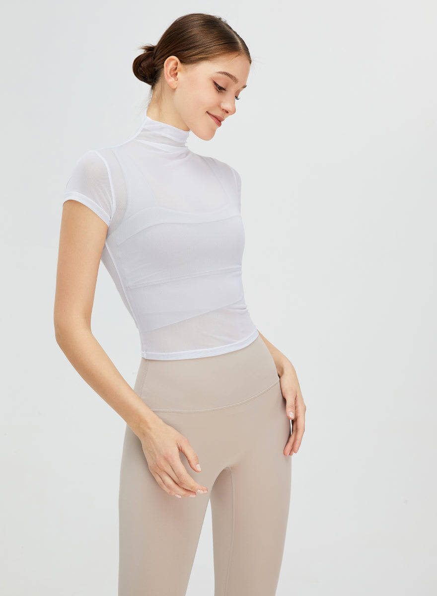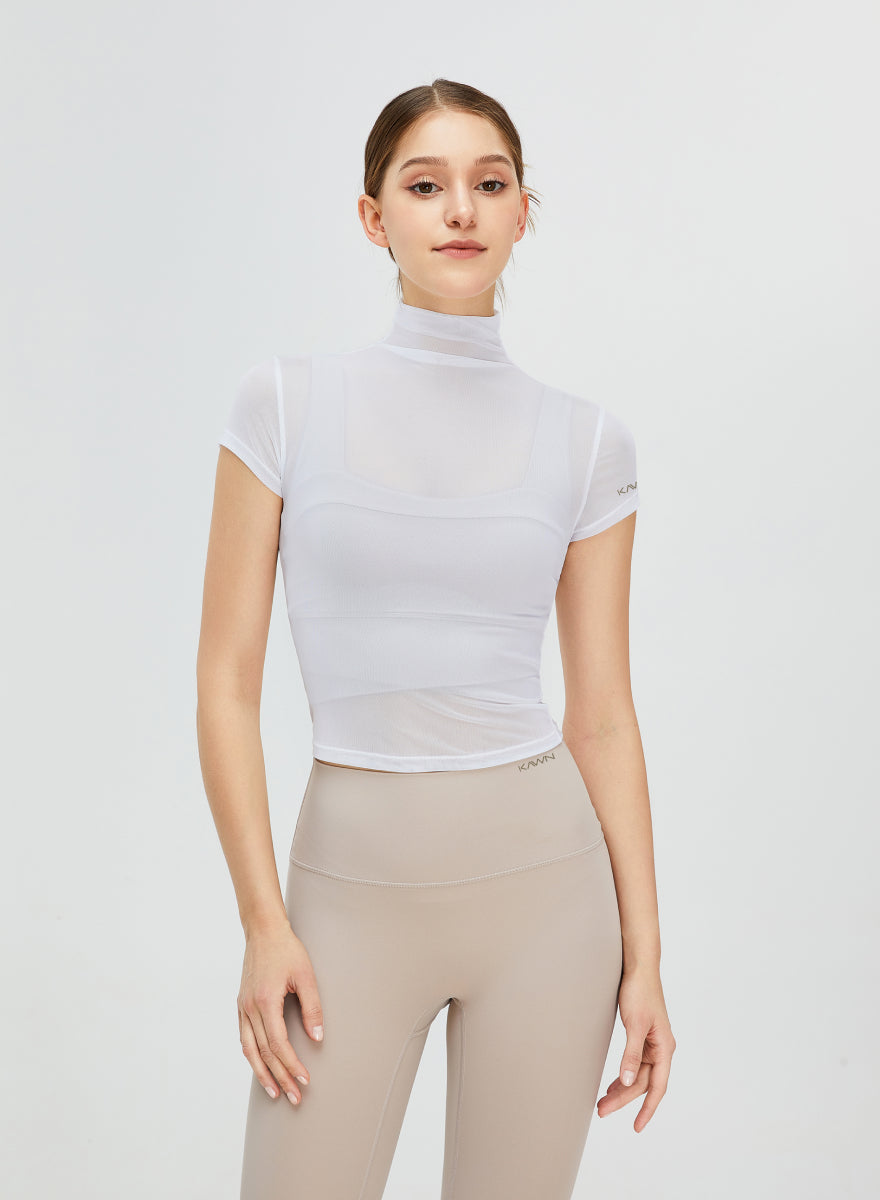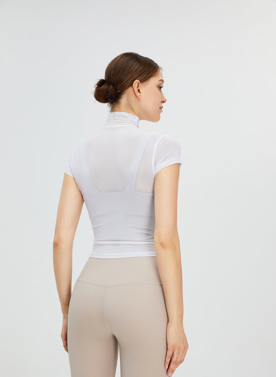 Short Sleeves Turtle Neck Seethrough Shirt