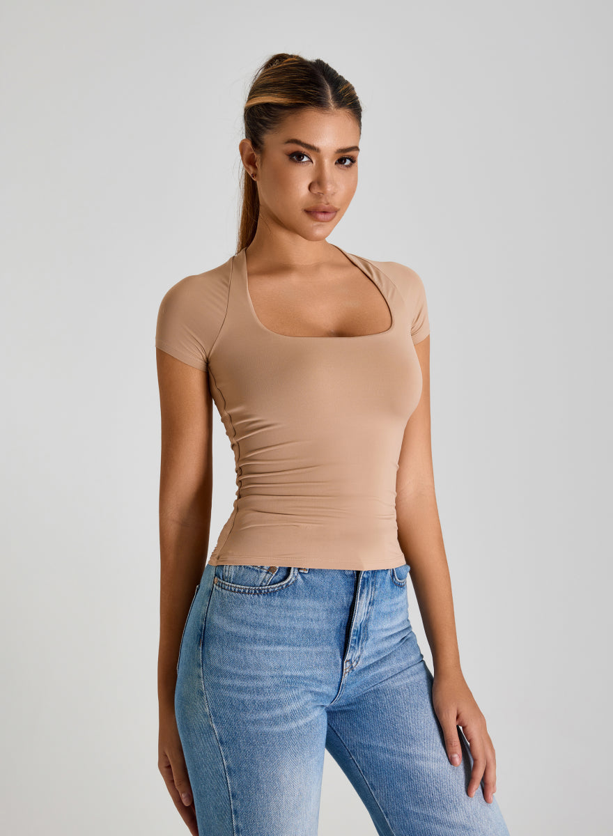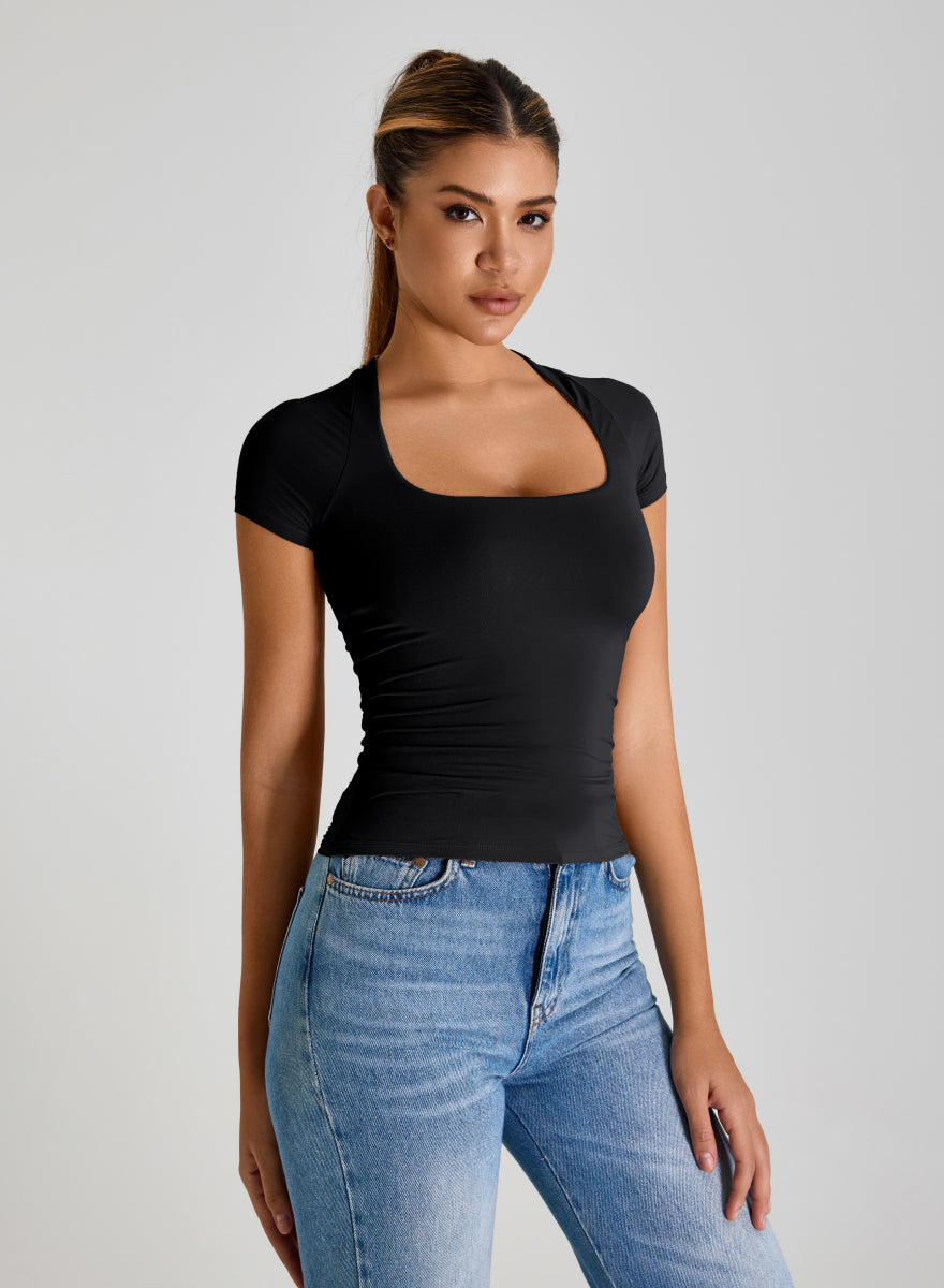 Square Neckline Short Sleeves Fitted Crop Top